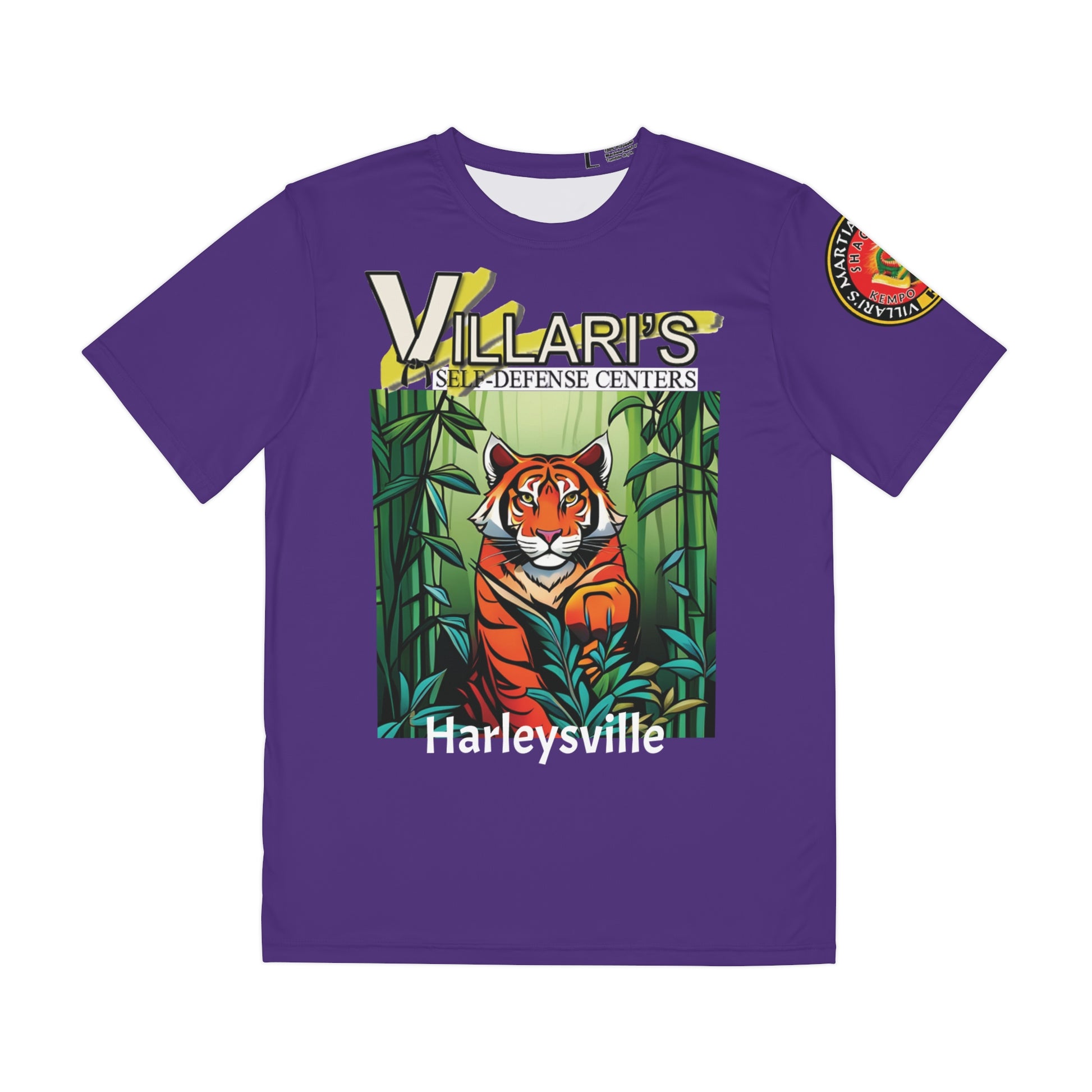 Wear this Tiger in a Bamboo Forest shirt while attacking your karate goals. This is a 100% moisture-wicking polyester shirt. This tees is stretchy, durable, and delivers total comfort.